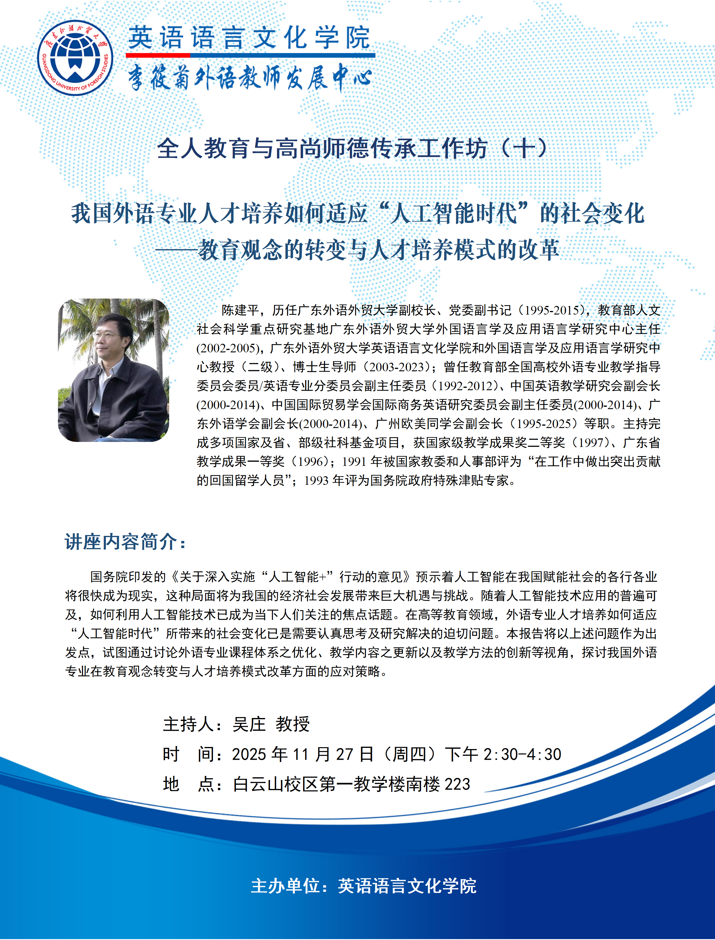 版权所有 © 2024 广东外语外贸大学英语语言文化学院 地址:广州市白云区白云大道北2号